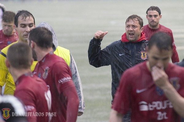 Esős, borongós időben a kezdődött a mérkőzés, melynek a 8. percében megszerezte a vezetést a hazai csapat. Majoros mutatott be szép cseleket, Takácshoz passzolt, aki hat méterről higgadtan lőtt a hálóba (1-0). A folyamatosan szakadó esőben a pálya egyre rosszabb minőségű lett, így a romló körülmények miatt nem lehetett minőségi futballról beszélni. A 13. percben Jakab rúgta be a labdát a hazai kapu elé, melyről csatáraink lemaradtak. Két perccel később Majoros kapott jó keresztlabdát a baloldalon, befelé cselezett, lövése azonban elakadt a blokkoló védőn. Nem sokkal később egy 19 méterről leadott átlövéssel próbálkozott Jakoviljevic, de a labda elkerülte a kapunkat. Az első negyedóra végén jobbról ívelhettek be szabadrúgást a hazaiak a Dunaújváros tizenhatosára, de védőink kivágták a labdát. Ezt követően ismét Takács szerezhetett volna gólt, de sikerült előle szögletre menteni. A 22. percben Böőr hiába lőtte a labdát Sánta kapujába, mivel les miatt a játékvezető érvénytelenítette a találatot. A Dunaújváros megpróbálta átvenni a játék irányítását, melynek újabb helyzet lett az eredménye. Egy baloldali beadás után Godslove fejelt hat méterről kapura, de Sánta bravúrral hárított. Kocsis sárgult be egy rosszütemű belépőt követően az első félóra letelte előtt, majd egyre jobban megnyíltak az égi csatornák, így nemcsak a hazaiakkal és a műfűvel, hanem az azon felgyülemlő pocsolyákkal is meg kellett küzdeniük Farkaséknak. A mieinknek azonban nem a nyakukba ömlő eső volt az igazi hidegzuhany, hanem az, amikor Kocsis a 35. percben megkapta a második sárga lapja után a pirosat is, így ettől kezdve tíz emberrel játszottunk tovább. Kvekveskiri vállalt el veszélyes helyről egy szabadrúgását, ám a hazai játékos a sorfalba vágta a labdát.