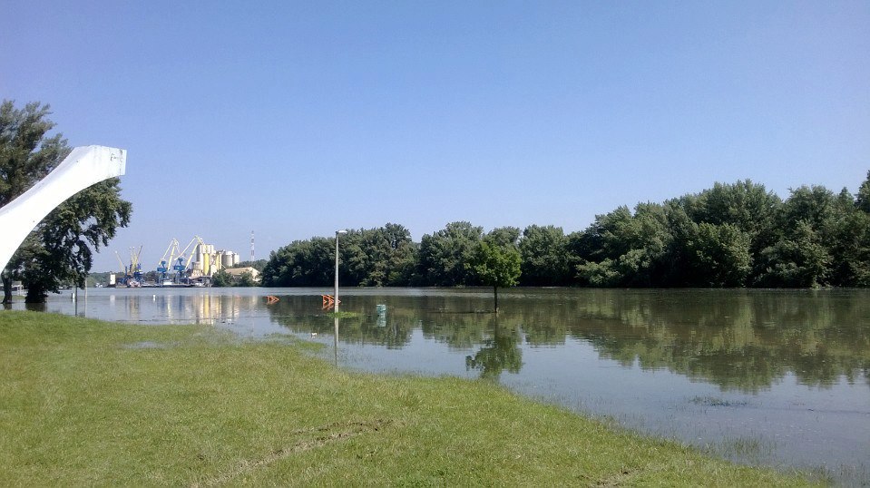 A városlakók ivóvízellátásának biztosítása érdekében a Szalki-szigeten lévő áramszolgáltató transzformátort homokzsákokkal védjük, így biztosítva az áramot a városi szivattyútelepeknek.