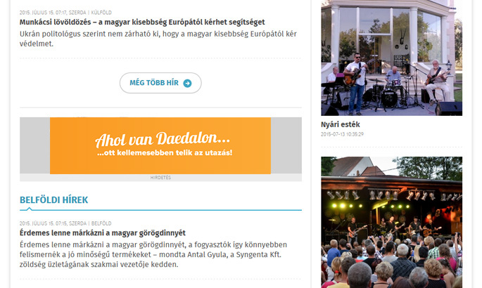 A Main Page típus a főoldalon és a hír olvasás aloldalon jelenik meg.
